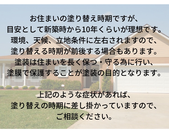 色あせは深刻な症状ではないので、まだ塗装時期に適しているとはいえない段階です。
